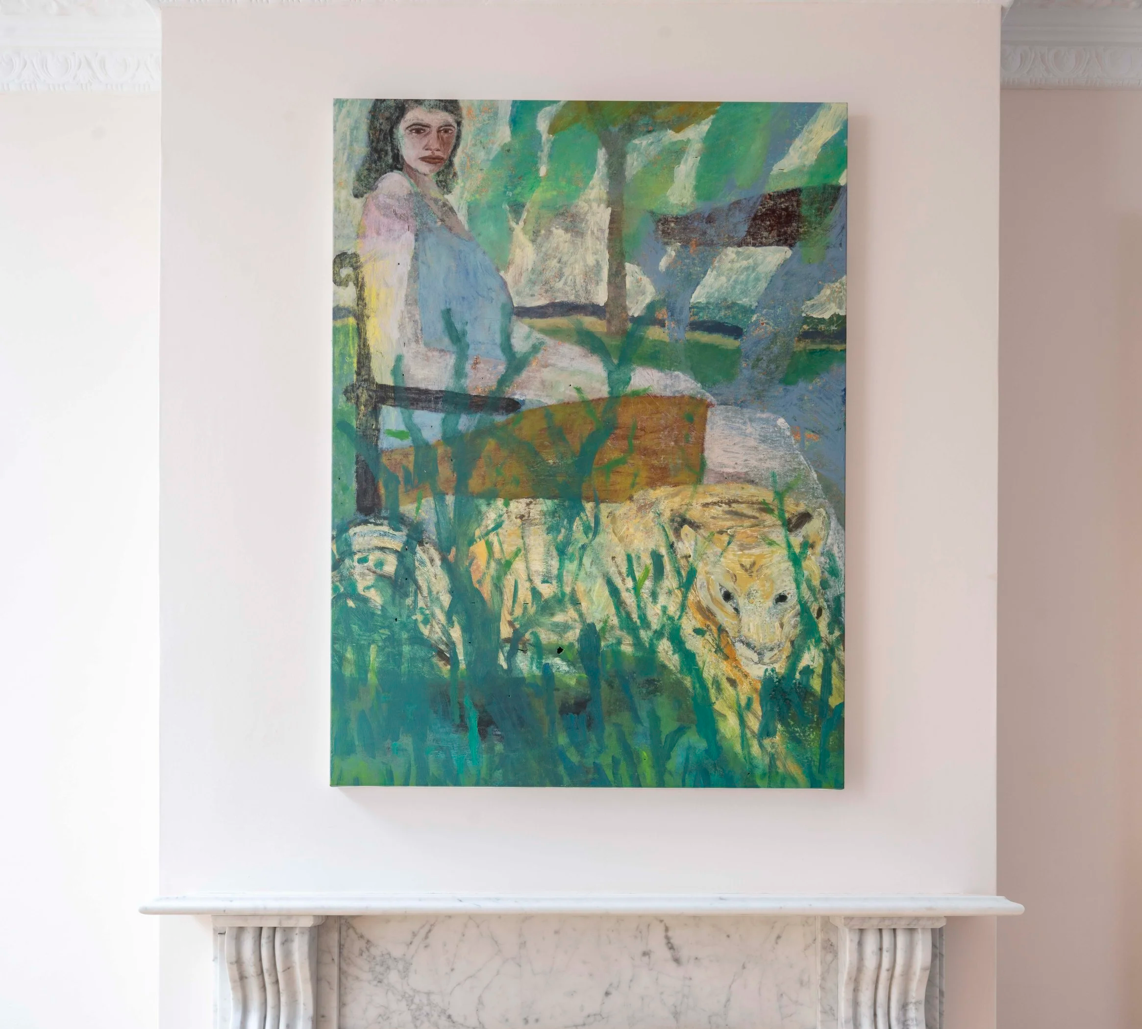 In addition to this figurative focus are carefully selected abstract works by Oliver Marsden and Joshua Smith, alongside a work from the Estate of William Turnbull which lend the scheme a considered and balanced elegance.