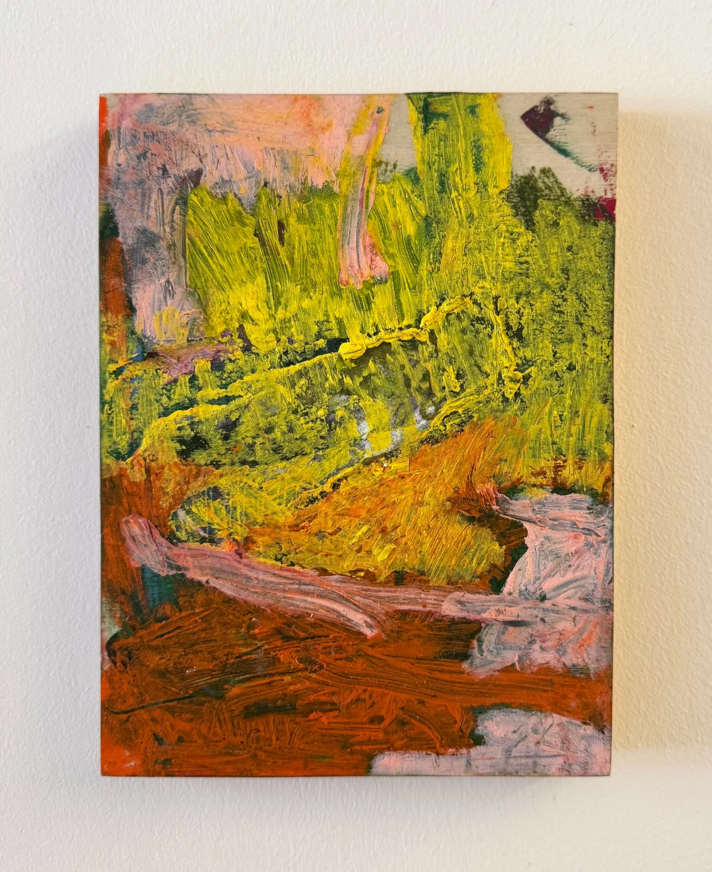 Ellie Walker ‘Sweater Weather’ , 2025Oil, oil stick, pencil and paper on board20 x 15 cm / 7.8 x 9.8 inches Enquire Enquire