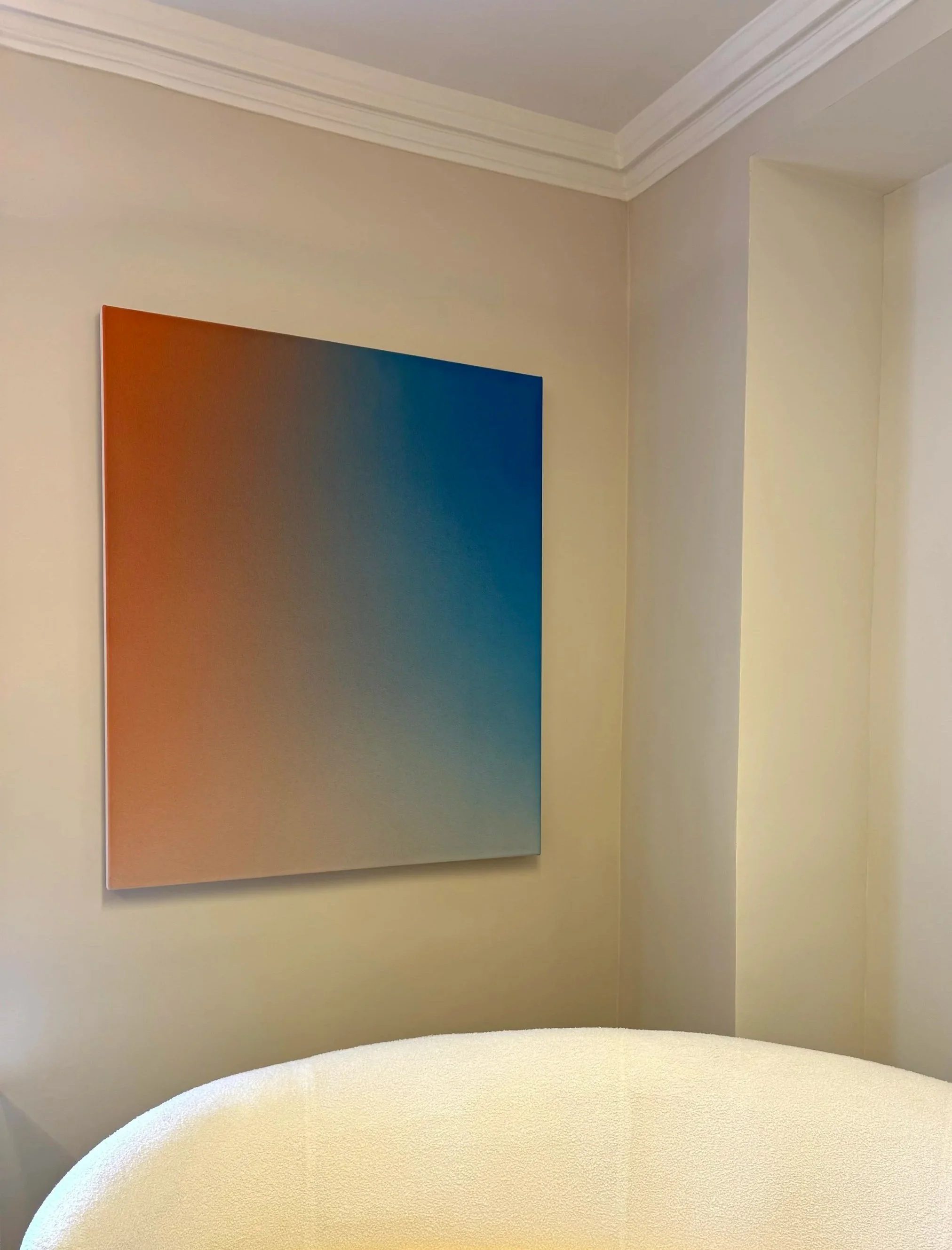 Oliver marsden Fade XXV (Orange Blue) OMS 482, 2014Acrylic on canvas120 x 100 x 4.5 cm / 47.2 x 39.37 x 1.77 inches Enquire Enquire